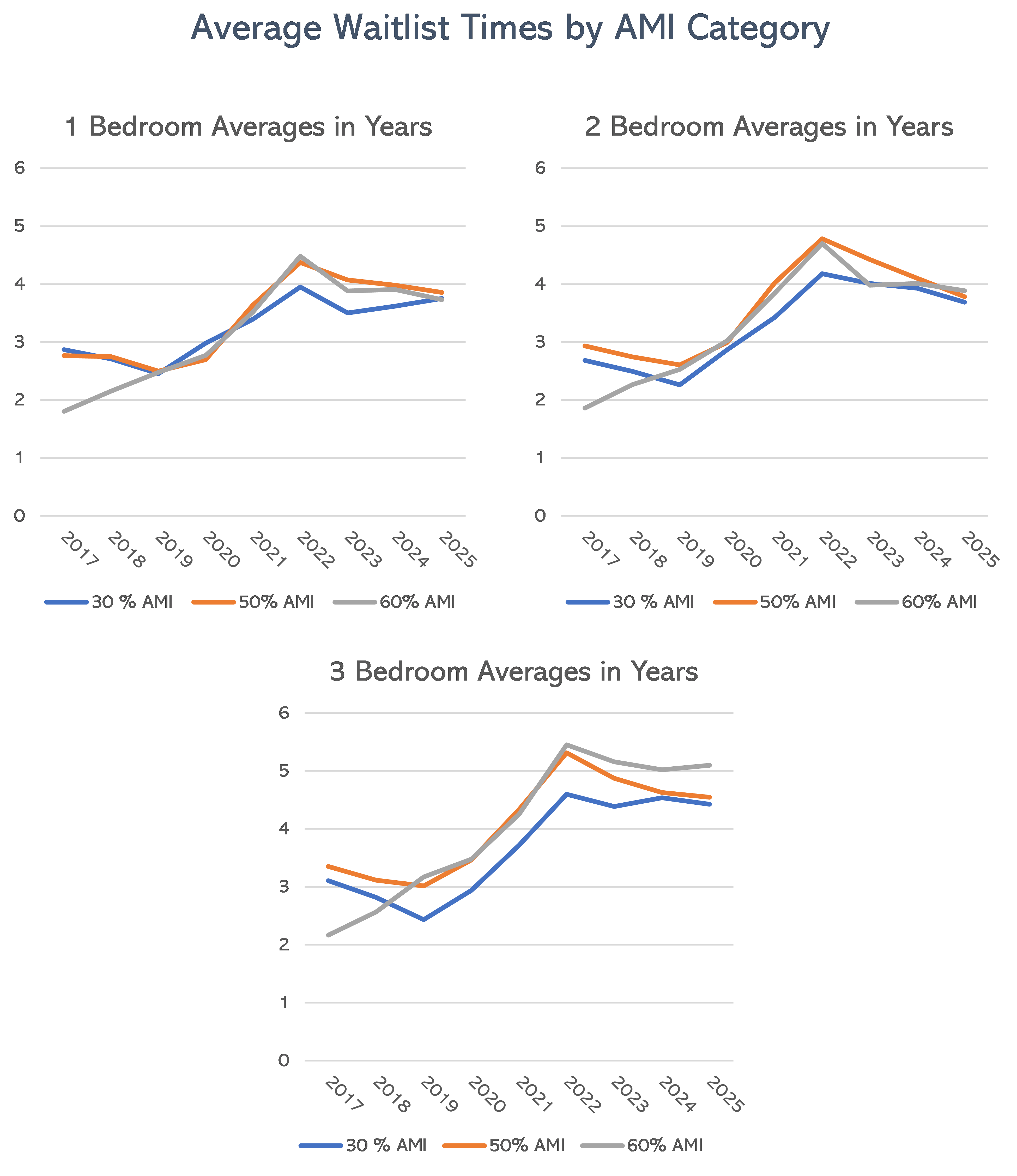 - The disappearance of the 60% AMI population means two things: Longer waitlist times due to more people competing for 30% AMI units, and 60% units sitting empty since landlords have less and less eligible applicants for those units.