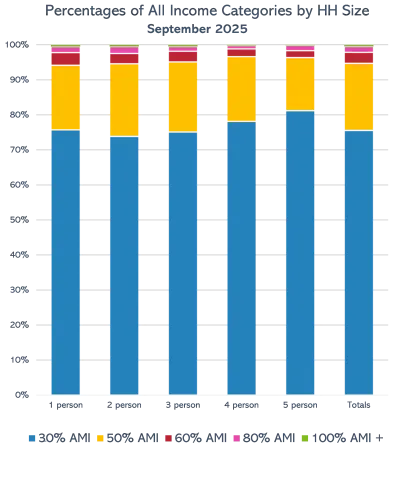 - Since the company’s inception, most applicants (85-90%) applying via HousingWorks.net have fallen under the 60% AMI range. During the pandemic, that number rose to approximately 98%, with applicants who fall under the 60% AMI range disappearing almost completely.